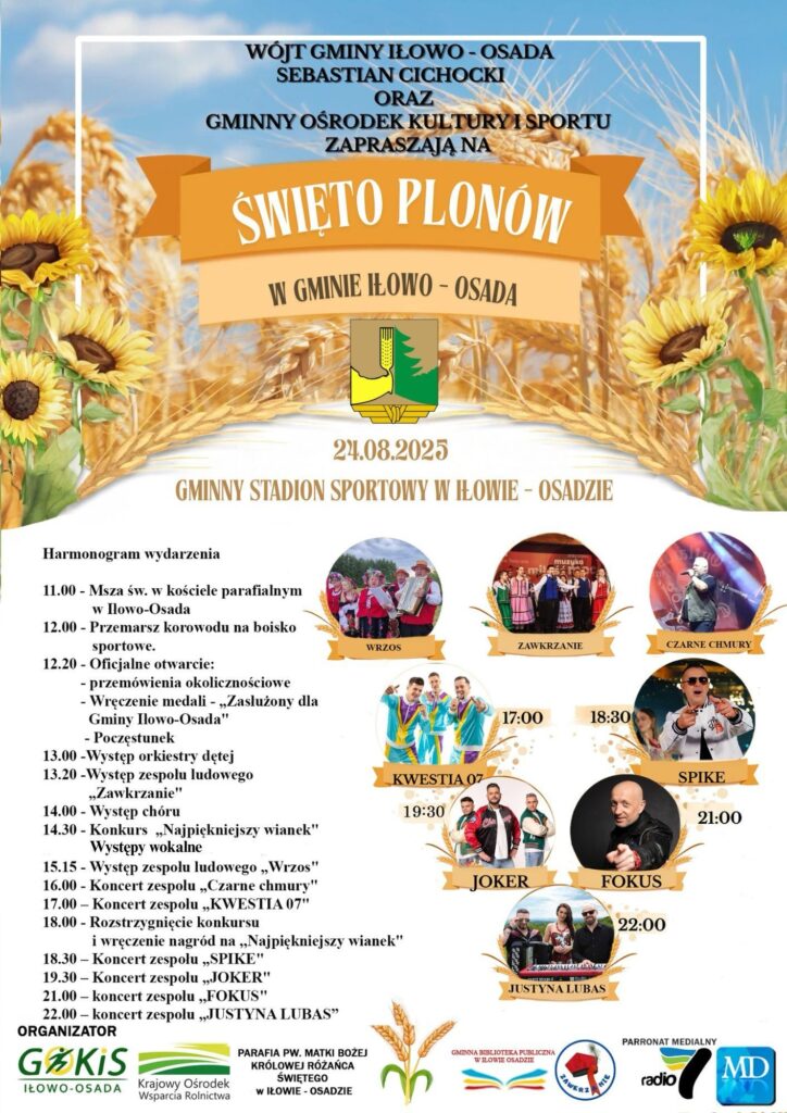 Święto Plonów na stadionie gminnym. Wystąpią m.in. Joker, Fokus, Spike, Justyna Lubas i inni.