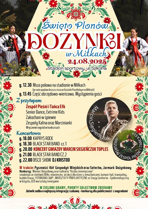 23.08 (sobota)GrodzicznoDożynki gminno-parafialneIness, Formacja Gosters, Duo Fantazja